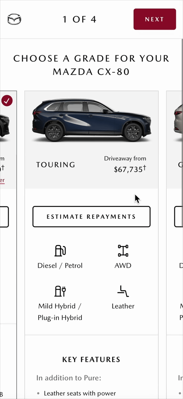 Redesigned the ‘Build My Mazda’ acquisition experience, increasing engagement by 21% and raising ‘Save to Email’ conversion from 8% to 13%.